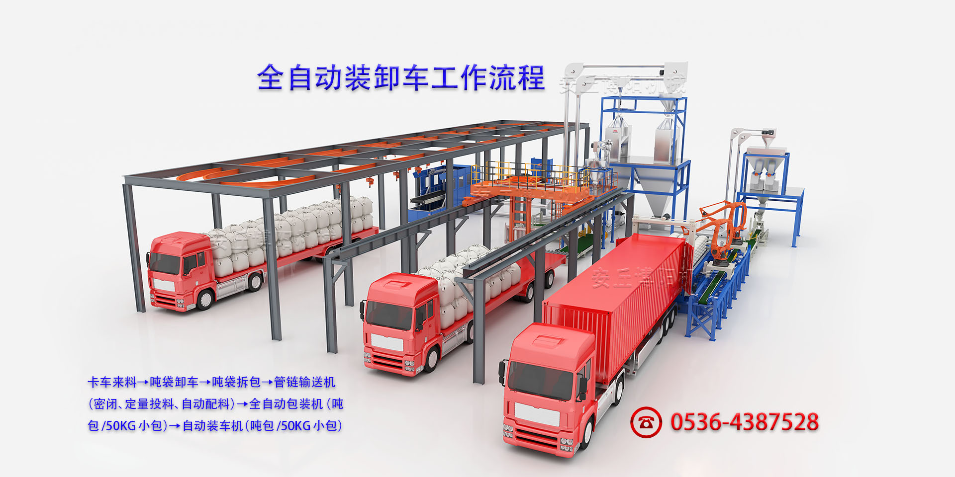 自動配料投料系統(tǒng)→全自動包裝機→碼垛機器人→AGV出入庫系統(tǒng)→自動裝車機生產線