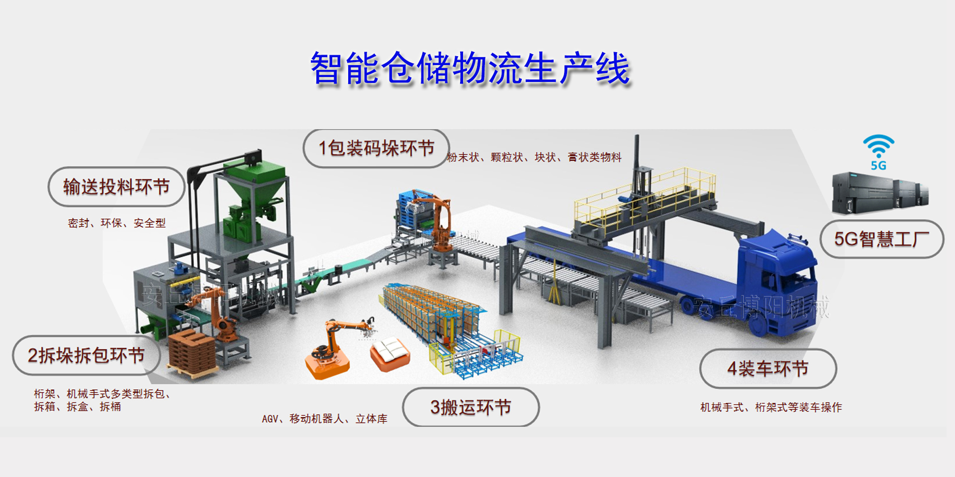 可用于倉庫、車站、貨場、碼頭等 包裝、裝卸、運儲行業(yè)的倉儲搬運物流裝備的智能生產線